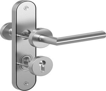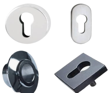 Rosette für Profilzylinder in Edelstahl Satiniert. Die Rosetten haben eine Kunststoff-Unterkonstruktion. Passend für alle Zimmertüren mit einer Türstärke von 37 - 42 mm